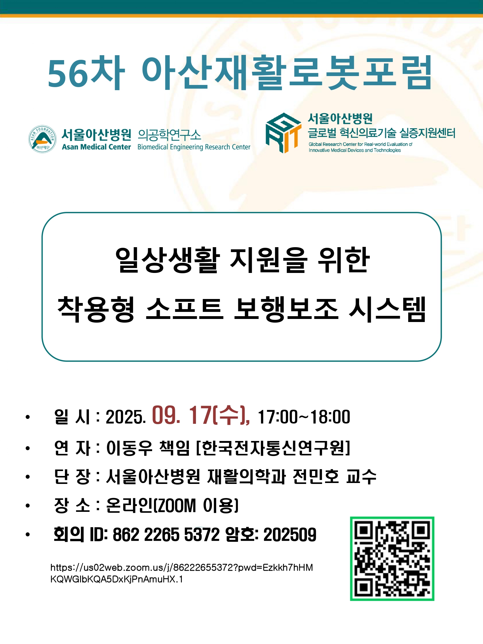 56차 의공학연구소 아산재활로봇포럼_9/17 : 일상생활 지원을 위한 착용형 소프트 보행보조 시스템